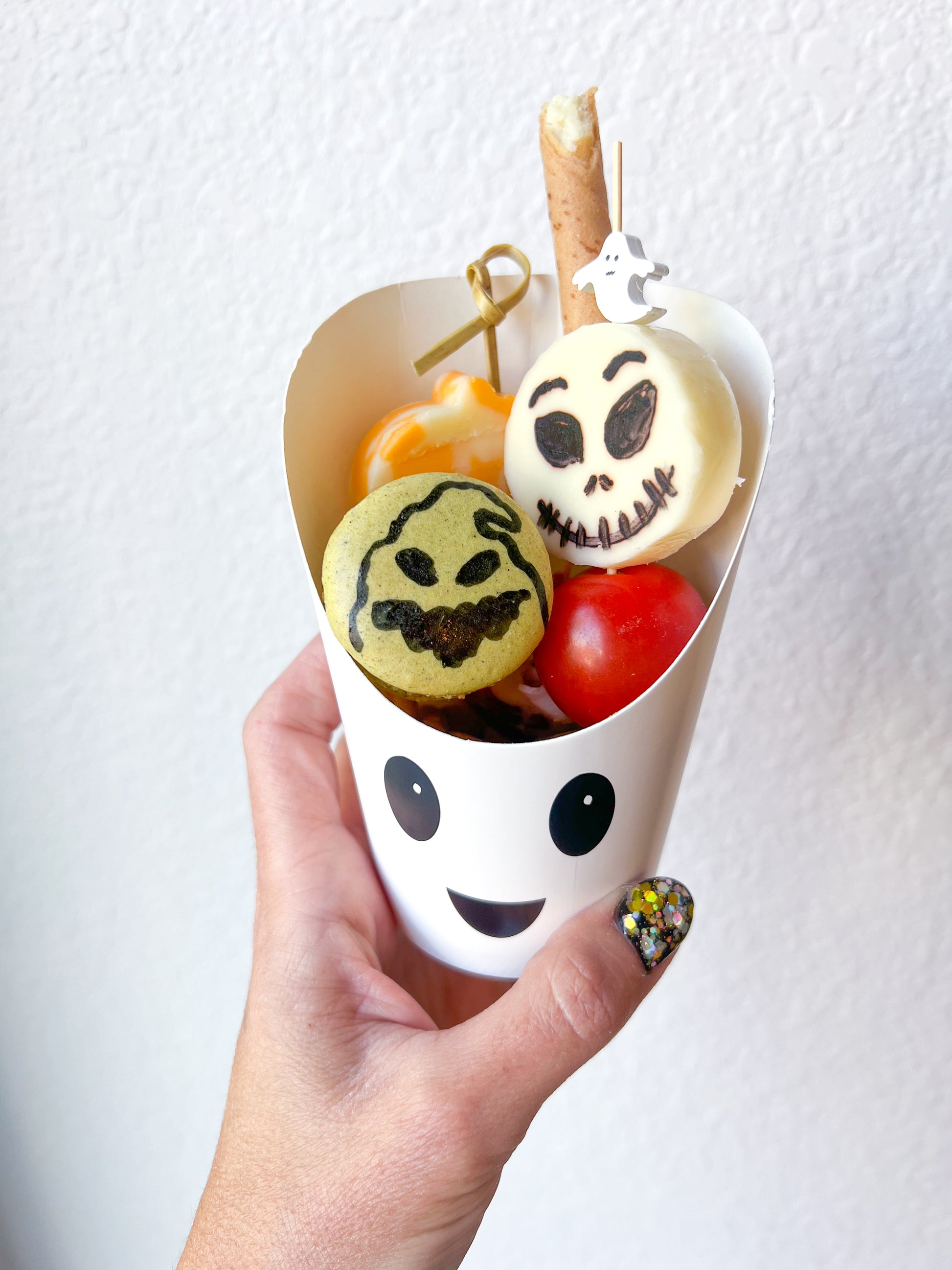 Having a halloween party? These cups are perfect for pass and play and can be made in any theme you choose. Pictured: Nightmare Before Christmas! Served with a mix of nuts, crackers, cheese, pickles, olives and sweets, this cup has something for everyone!