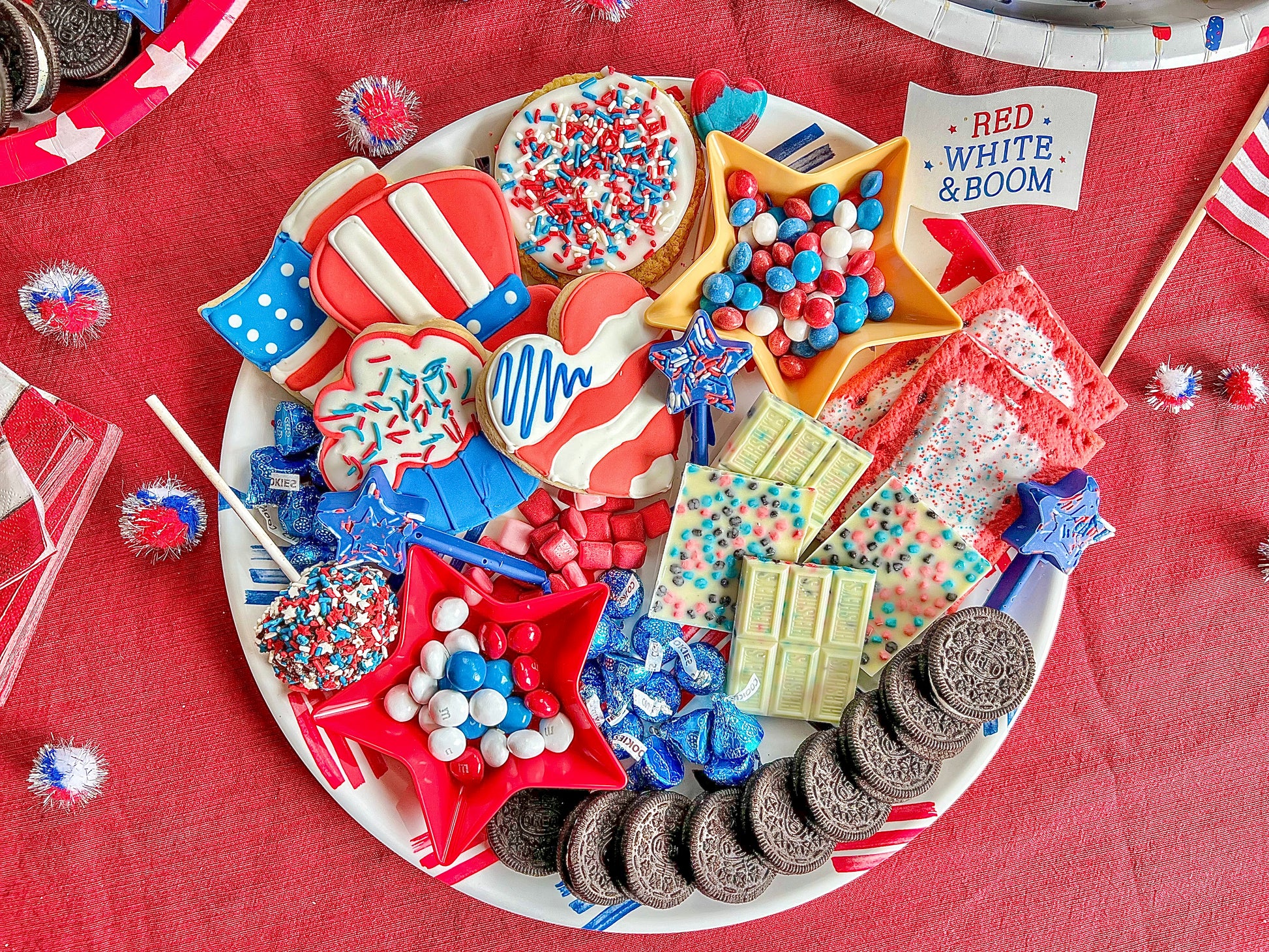 Add a spark of sweetness to your Independence Day celebration! This festive platter is bursting with red, white, and blue treats—think frosted star cookies, chocolate-dipped strawberries, candy clusters, marshmallow pops, and more. Every bite is playful, colorful, and perfectly themed for July 4th fun. Ideal for kids, picnics, and fireworks parties, this board brings the “oohs and ahhs” long before the sky lights up. 🎆🍓🍫🇺🇸. Made to order, just the way you want it!