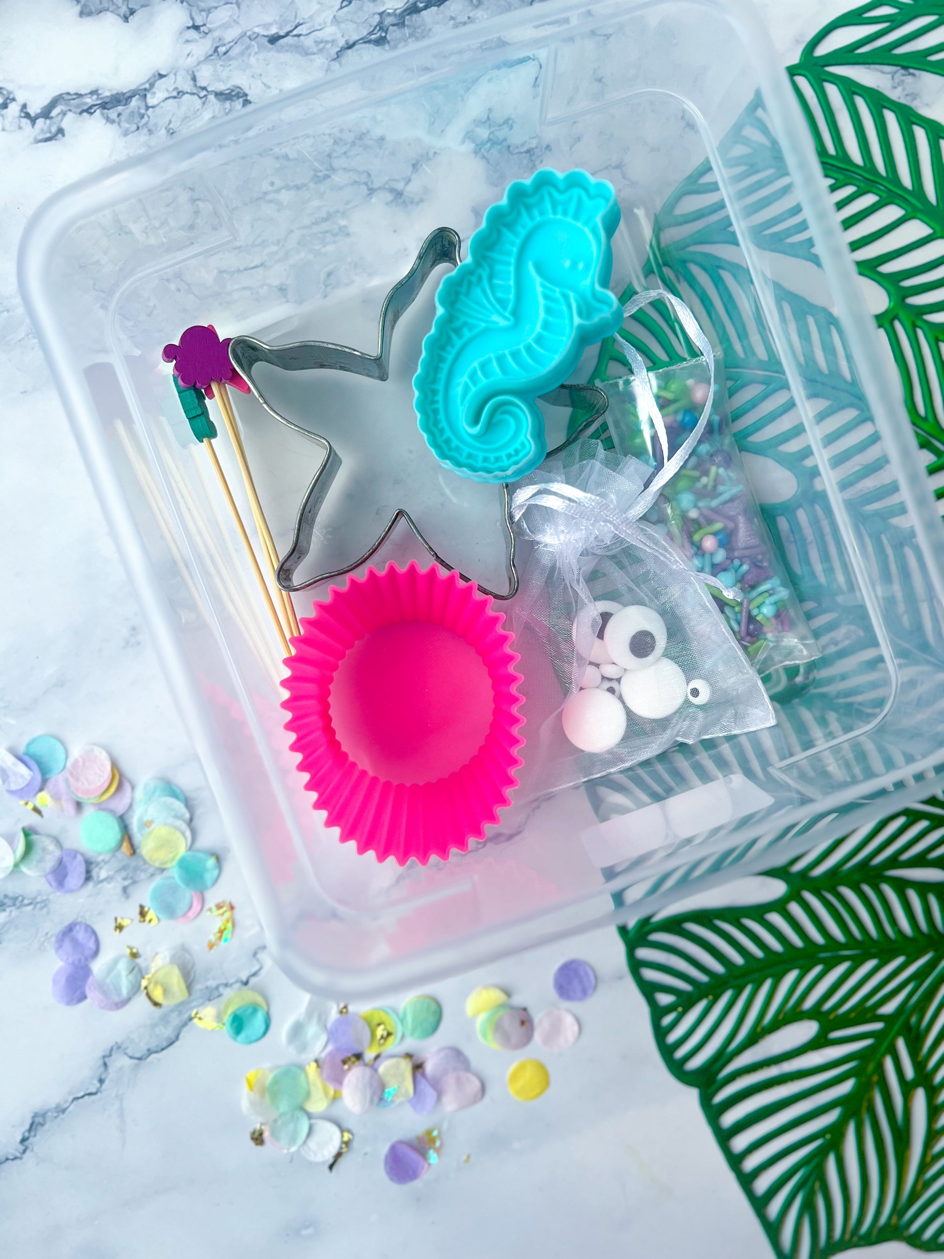Create your own ocean adventure with our mini kit! Bring your plates to life or let the kids create their own plates with these easy use tools. Ideas and instructions for use included within the kit! Cookie cutter will vary from 3 shapes (sea star, mermaid tail, shell). Cookie Stamp will vary from 8 shapes (whale, fish, dolphin, shark, crab, seahorse, turtle, sea star). Offered as shipping or local pick-up.